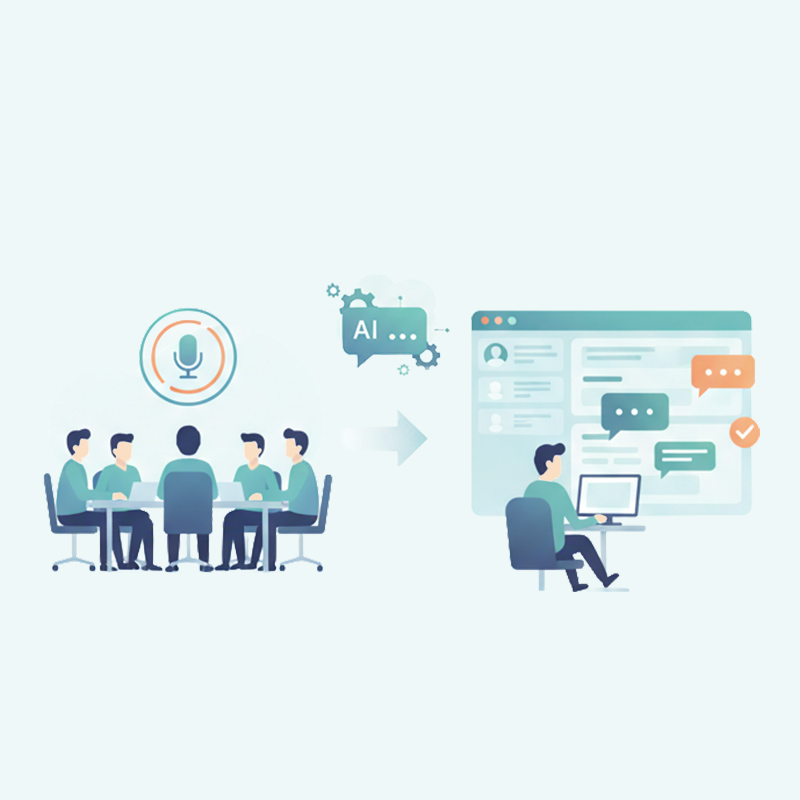 会議内容は「AIミニッツ」で自動記録し、その内容を「AI労務君」でナレッジ化、さらに「AIヘルプデスク」にも反映します。