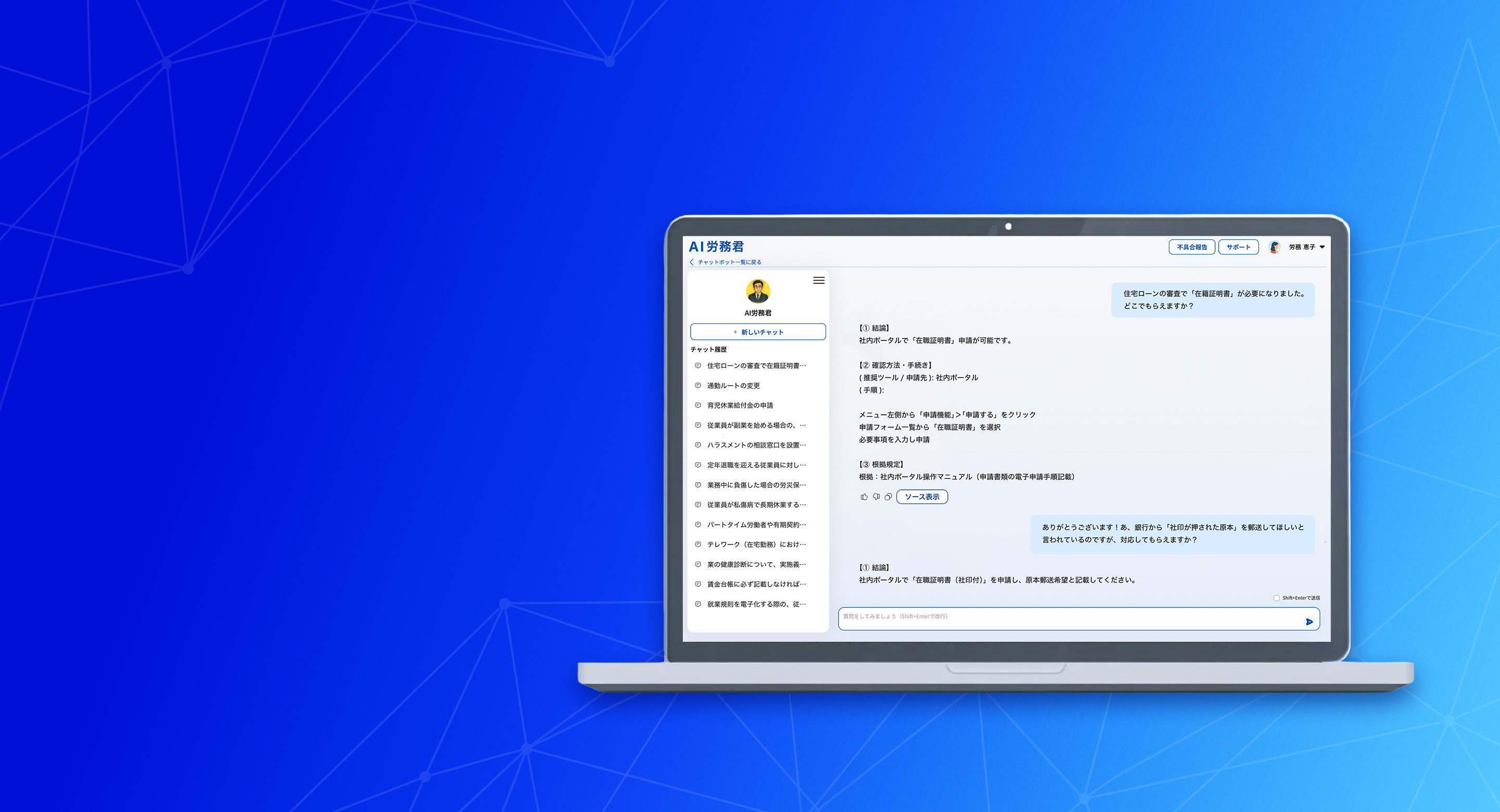 社内からの質問は「AI労務君」、顧客からのよくある問い合わせは「AIヘルプデスク」が一次対応を担います。