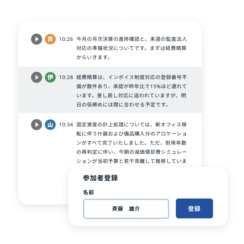 話者認識機能を備え、専門用語の辞書登録にも対応しています。独自に開発した音声認識AIにより、高精度な文字起こしを実現。