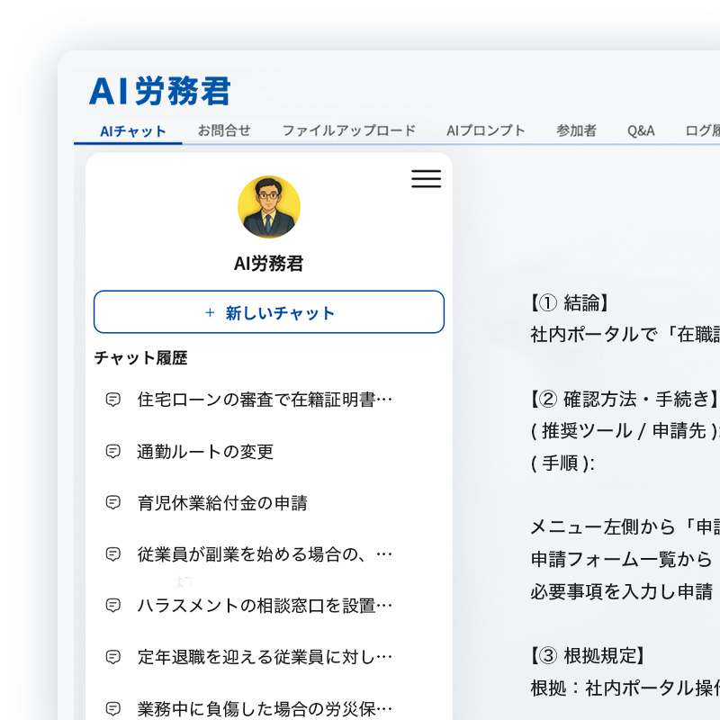 | AI労務君 by eerp | 他社労務AI | 生成AI(LLM) | Web検索 | |