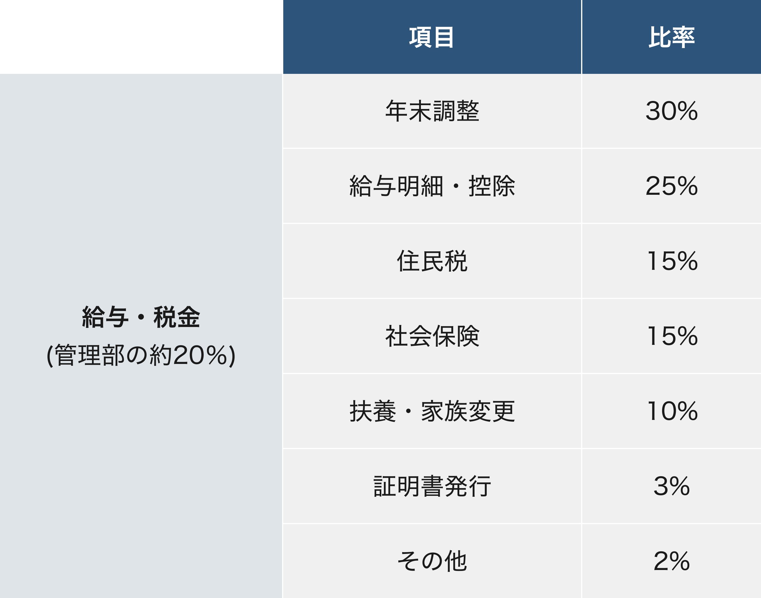 2. 給与・税金に関する問い合わせ(管理部の約20%)