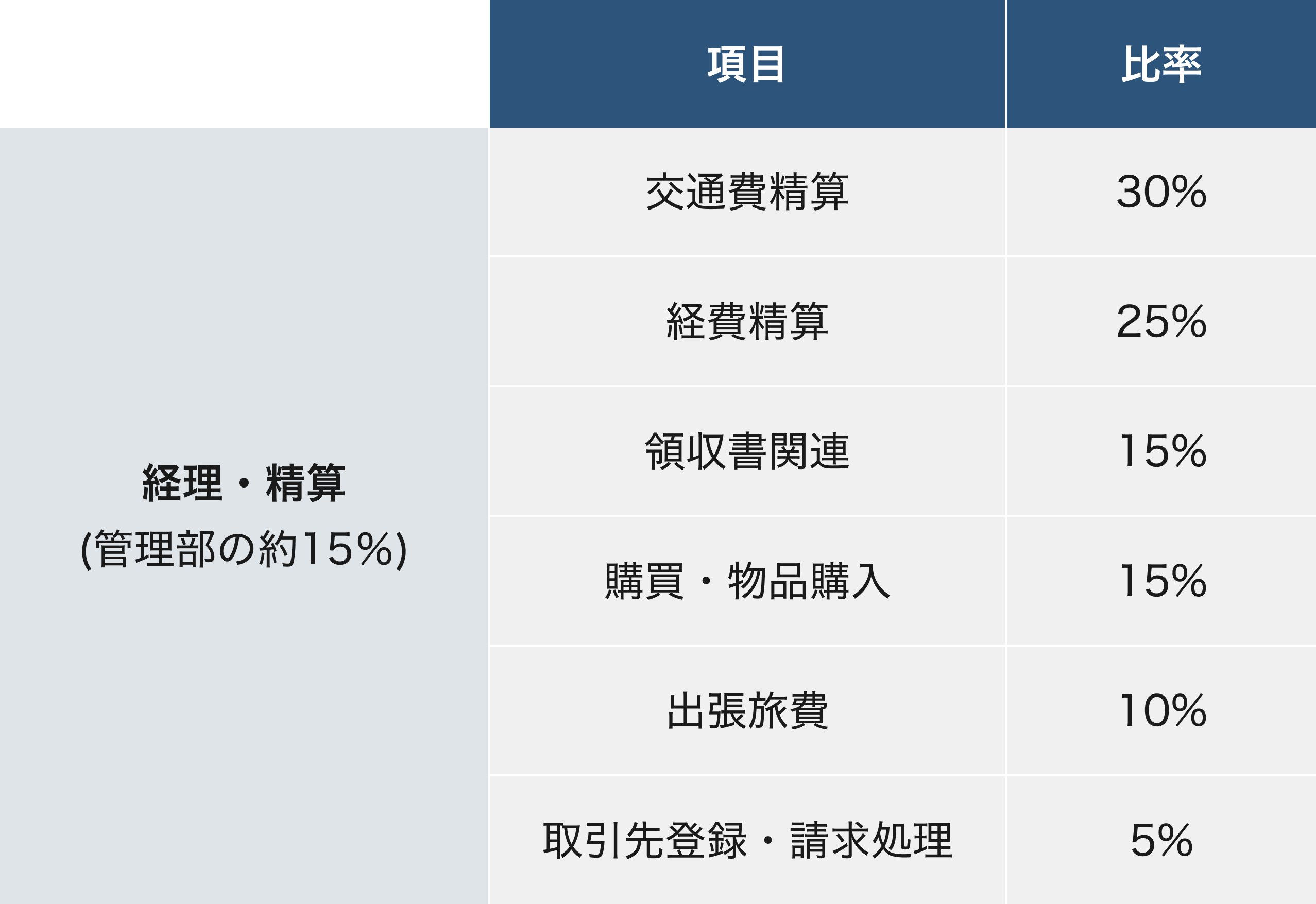 - 経理・精算(約15%)